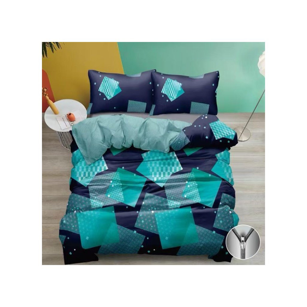 Francouzské povlečení 200×220 + 2×70×90 – modrozelené s geometrickým vzorem