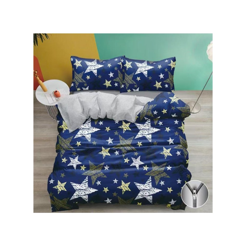 OBOUSTRANNÉ BAVLNĚNÉ POVLEČENÍ - FRANCOUZSKÉ - 200x220cm - modré s motivem hvězd + PROSTĚRADLO ZDARMA !