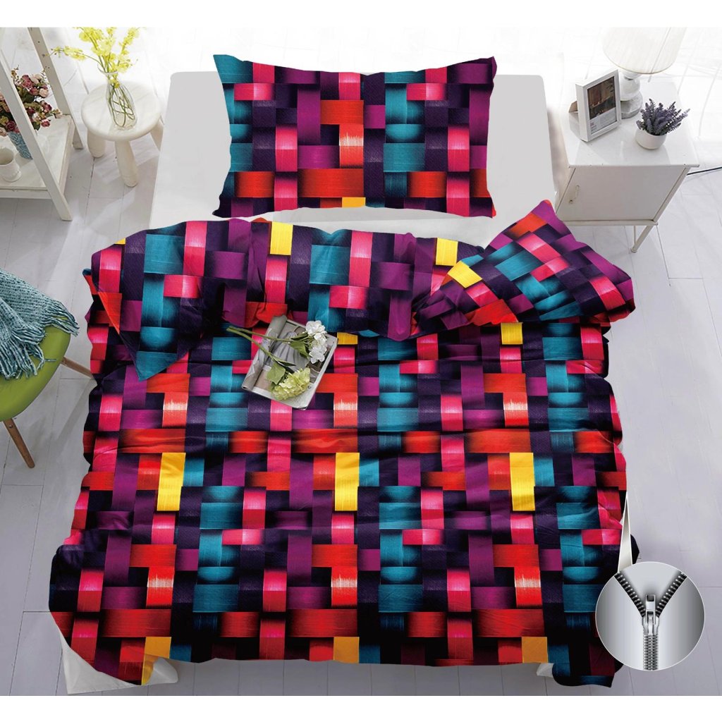 Bavlněné povlečení 140×200 + 70×90 – 3D multicolor moderní vzor, zip, pestrý design
