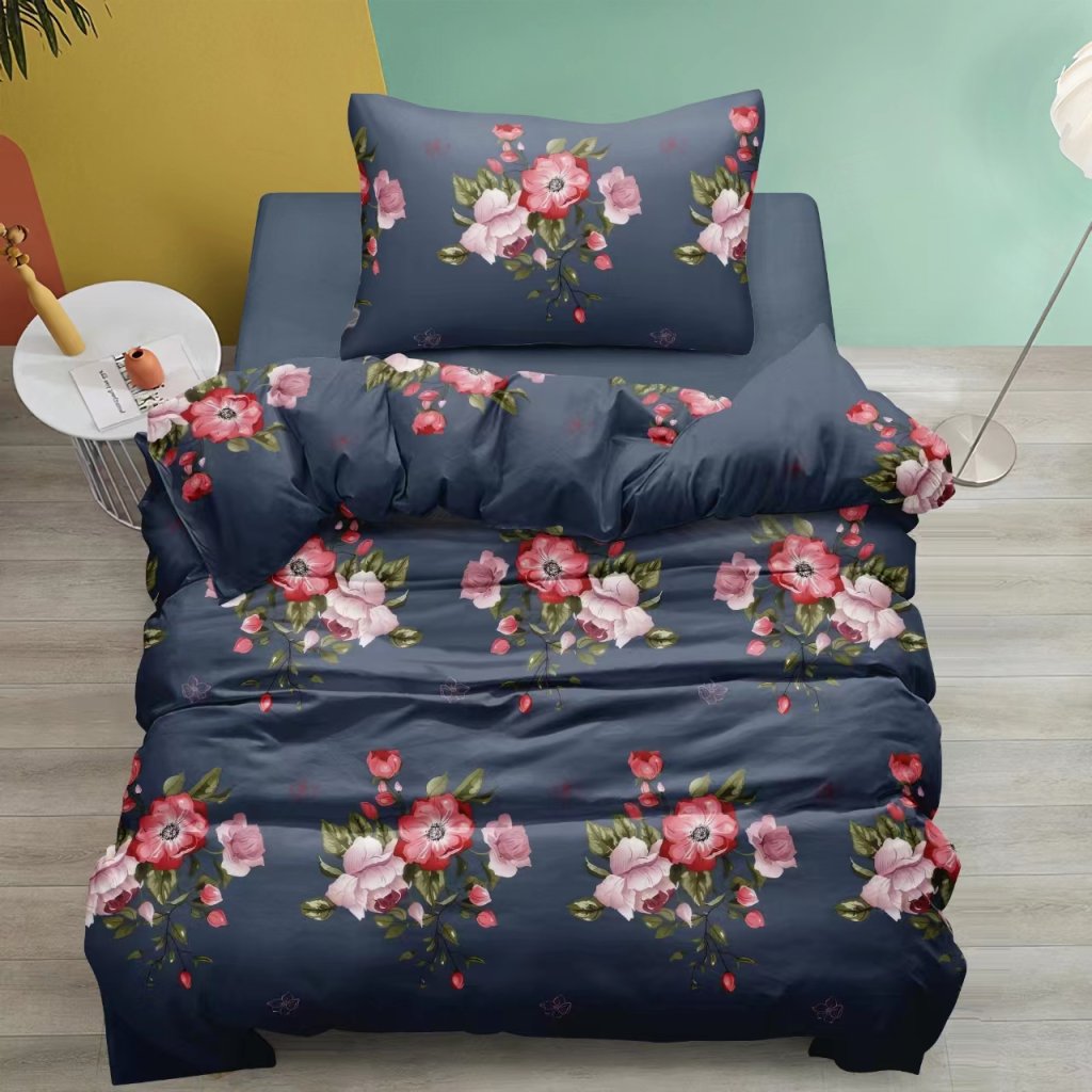 Bavlněné povlečení 140×200 + 70×90 – tmavě modré s romantickým květinovým vzorem, zip