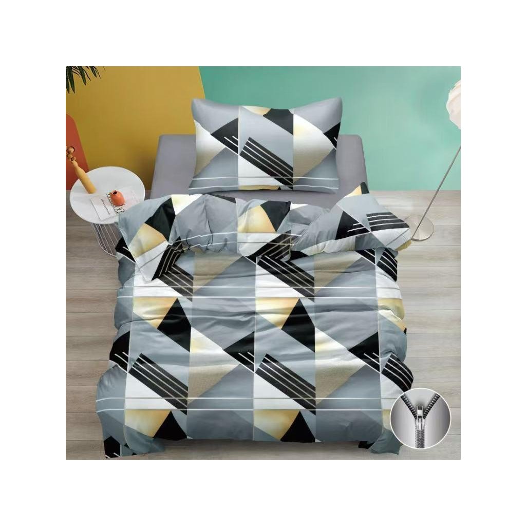 Bavlněné povlečení s geometrickým vzorem – šedé, 2dílná sada 140×200 / 70×90 cm, zip
