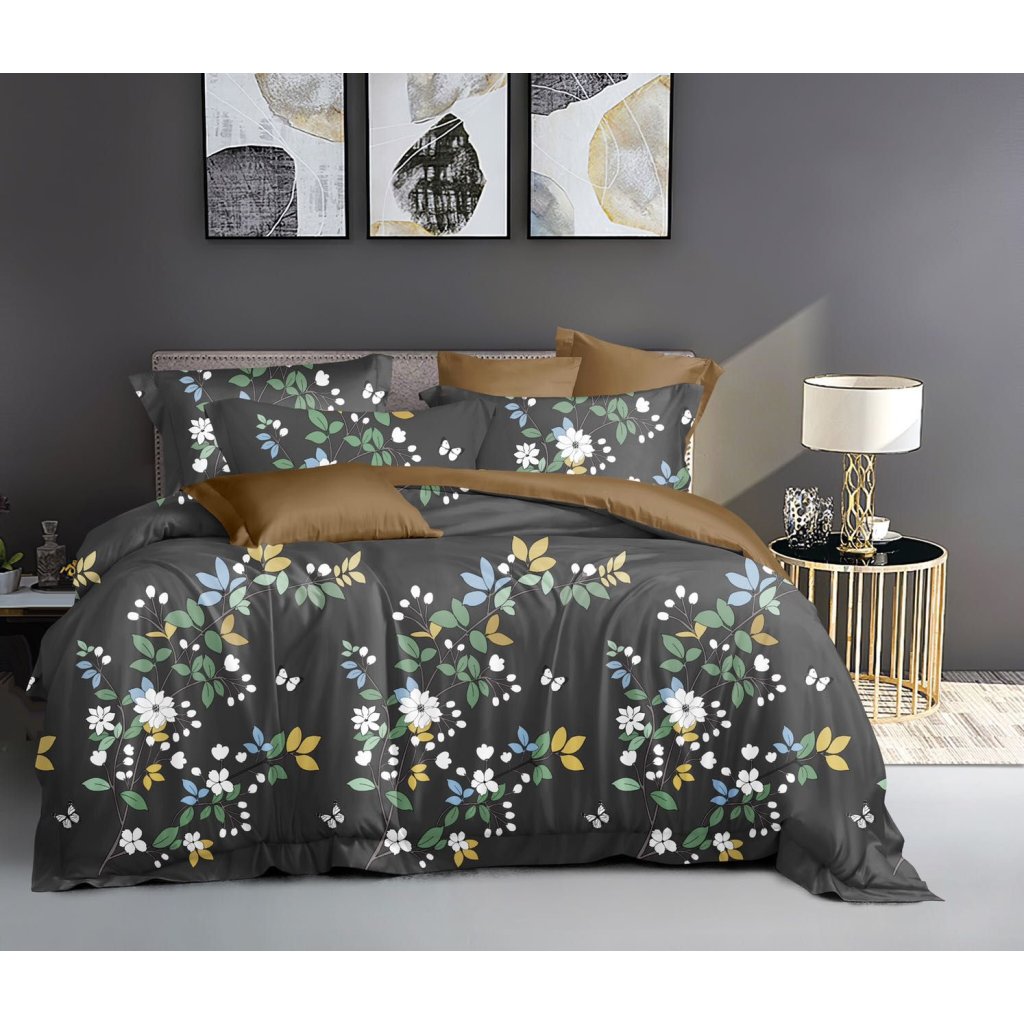 Toto elegantní třídílné ložní povlečení v tmavě šedém květinovém designu dodá ložnici moderní vzhled a jemný přírodní nádech. Barevné lístky a bílé květy vytvářejí příjemný kontrast, který působí harmonicky a stylově.