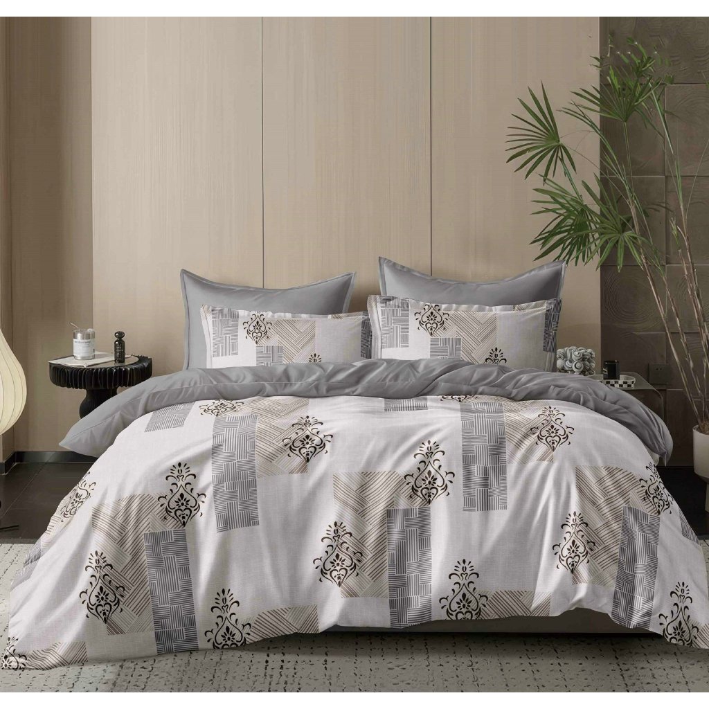 Luxusní bavlněné povlečení 140×200 + 70×90 – ORNELLA šedo-béžový vzor | Povlecenideka.cz