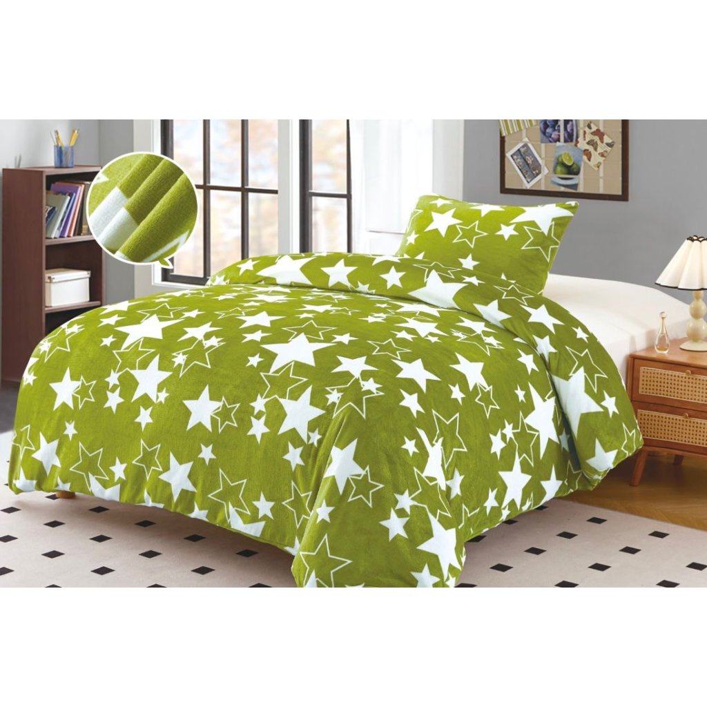 Mikroplyšové povlečení 140×200/70×90 – hebké a hřejivé povlečení s motivem hvězd, zelené