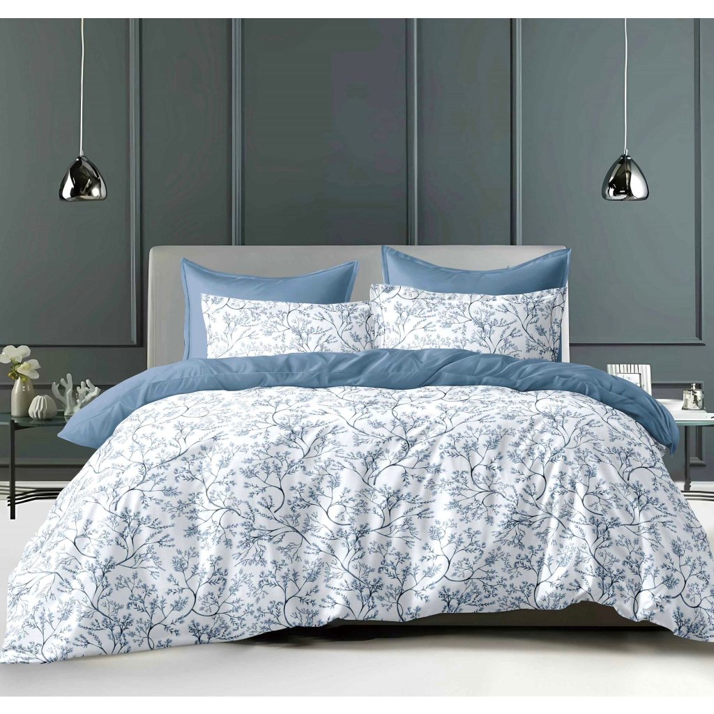 Vneste do své ložnice harmonii, svěžest a elegantní minimalismus s tímto povlečením inspirovaným přírodou. Bílý podklad s jemným modrým vetvovým motivem vytváří čistý, klidný a sofistikovaný vzhled — ideální pro moderní, skandinávský a nadčasový styl ložnice.
