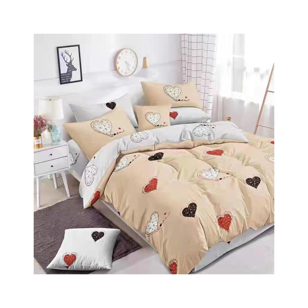 Bavlněné povlečení s prostěradlem pro dvoulůžko 140×200/70×90/40×50 – Béžové se srdíčkovým vzorem, 100 % bavlna