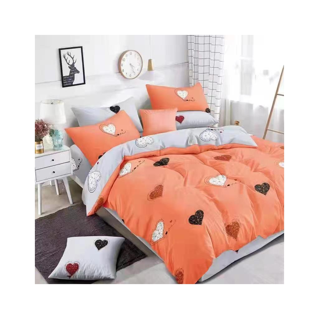 Bavlněné povlečení s prostěradlem pro dvoulůžko 140×200/70×90/40×50 – Oranžové se srdíčky, 100 % bavlna