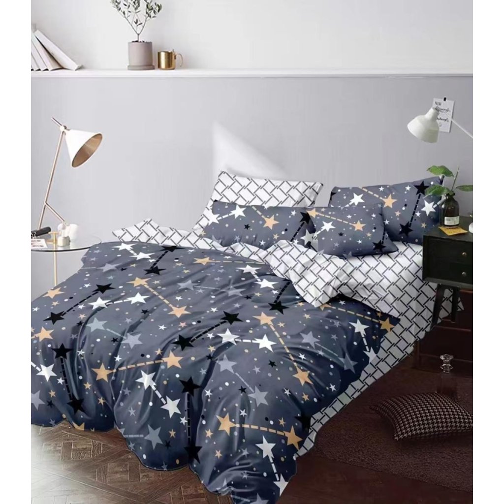Povlečení s motivem hvězd na šedém podkladu | Moderní design, zip