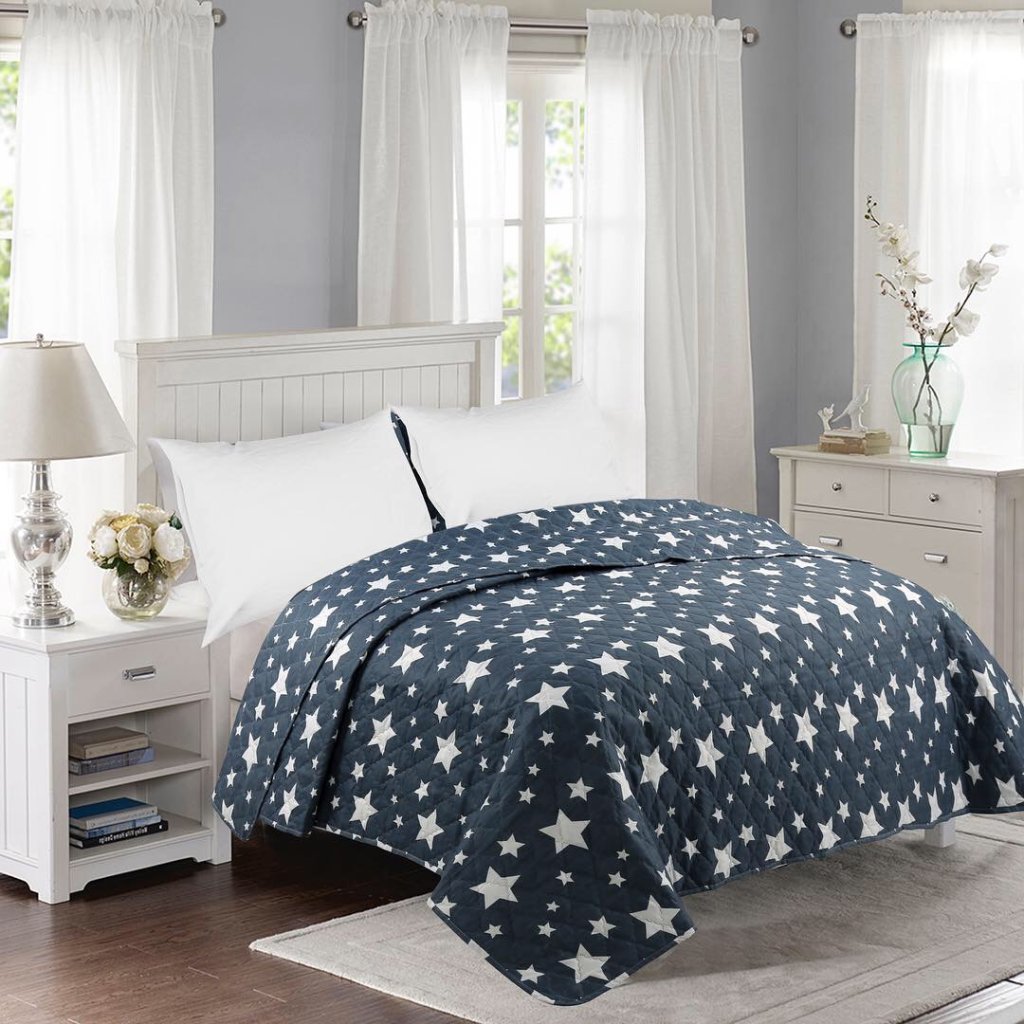 Prošívaný přehoz přes postel 200×240 cm – Tmavě modré hvězdy