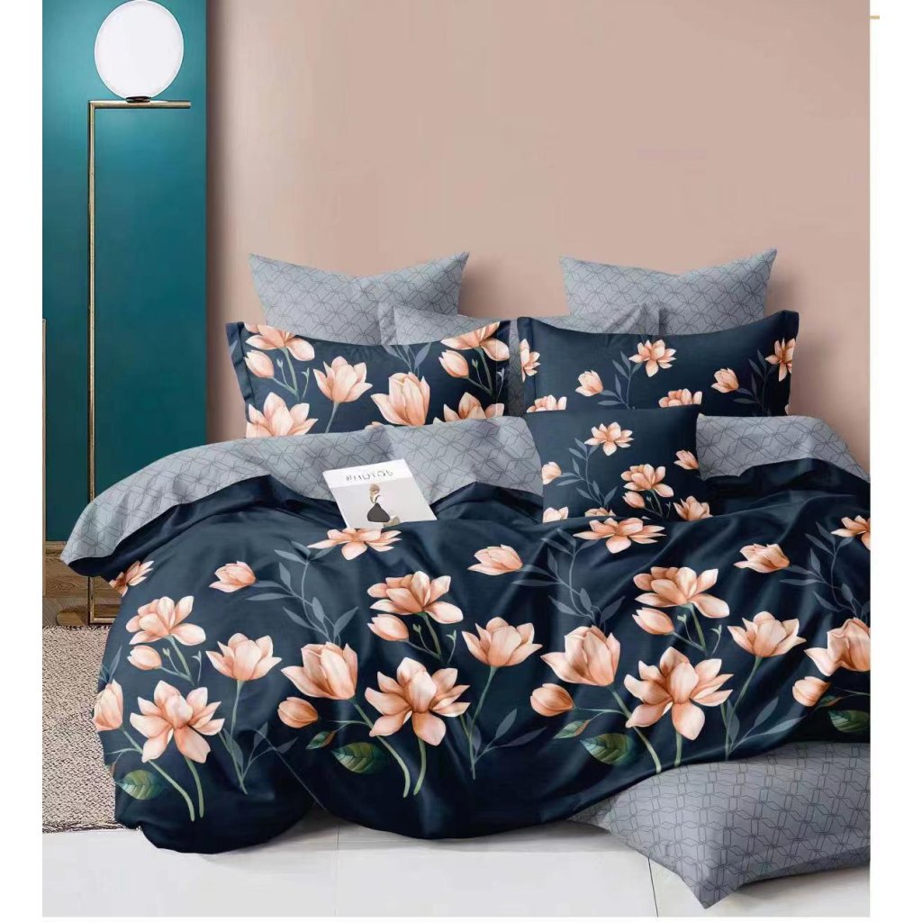 Tmavě modré povlečení s květy v broskvové barvě | Elegantní květinový design, zip